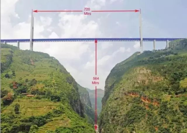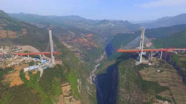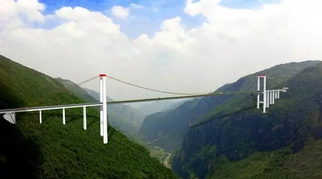 离尼珠河大桥不远的地方,是去年8月25日通车的普立大桥,它同样位于云南省宣威市。其是G56杭瑞高速云南境内首段三座特大桥之一,横跨普立大峡谷,是普宣高速公路控制性工程,于2015年8月25日正式通车。普立特大桥是主桥设计为单跨628m(全长1040米)的钢箱梁悬索桥,峡谷谷底距主塔顶达653.5米,桥面距离谷底500米,目前是世界最高的悬索桥。同时,普立特大桥在2016年底尼珠河大桥(北盘江腊龙特大桥)和2020年塔库金沙江大桥建成前,将始终保持世界最高桥的地位。龙江特大桥位于云南省西部、横断山脉南段,路桥垂直跨越龙江。它一头连着魏魏高黎贡山,一头连着极边腾冲,,直通缅甸。今年5月1日,经过近5年的施工建设,亚洲最大钢箱梁悬索桥——云南龙江特大桥已经正式通车。大桥采用双塔单跨钢箱梁悬索桥,保山龙陵岸索塔高度为169.688米,保山腾冲岸索塔高度为129.703米。全长2470多米 ,桥面离江面280米,最高的索塔顶到江面470米,主桥跨径布置为320米 1196米 320米,抗震等级按Ⅸ度设防,是云南省首座特大跨径钢箱梁悬索桥,也是亚洲山区最大跨径的钢箱梁悬索桥。连接攀枝花和旅游城市丽江的华丽高速公路上的塔库大桥。建成后,512米的高度将不仅是长江这条亚洲最大河流上的最高桥梁,而且是世界最高的悬索桥,并且也是世界最高的跨越大江大河的桥梁。它位于龙开口水库末端,桥位处水位抬高不多,水库水面上仍有480余米高,距离原始金沙江水面达512米。拥有惊人的高度的同时,此桥主跨也达到1190米,是世界山地桥梁主跨中第二名,仅比第一名龙江特大桥短6米。