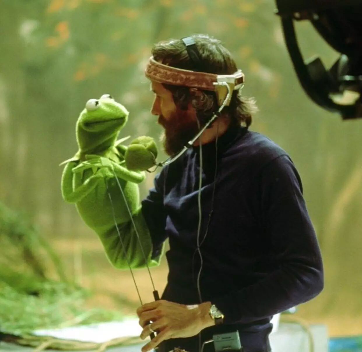 Jim Henson和Kermit在木偶秀片场