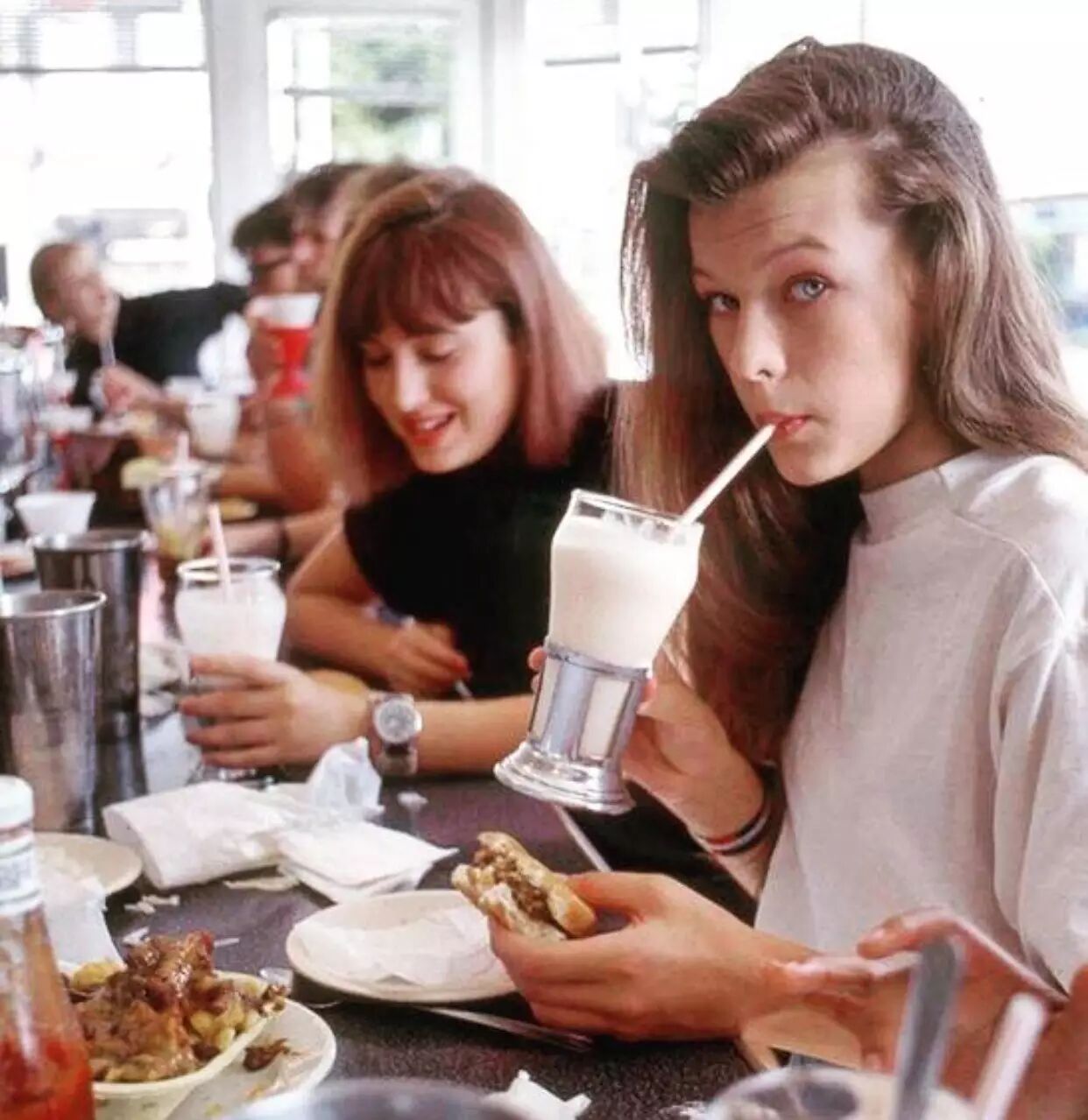 十六岁的Mila Jovovich在餐厅吃饭