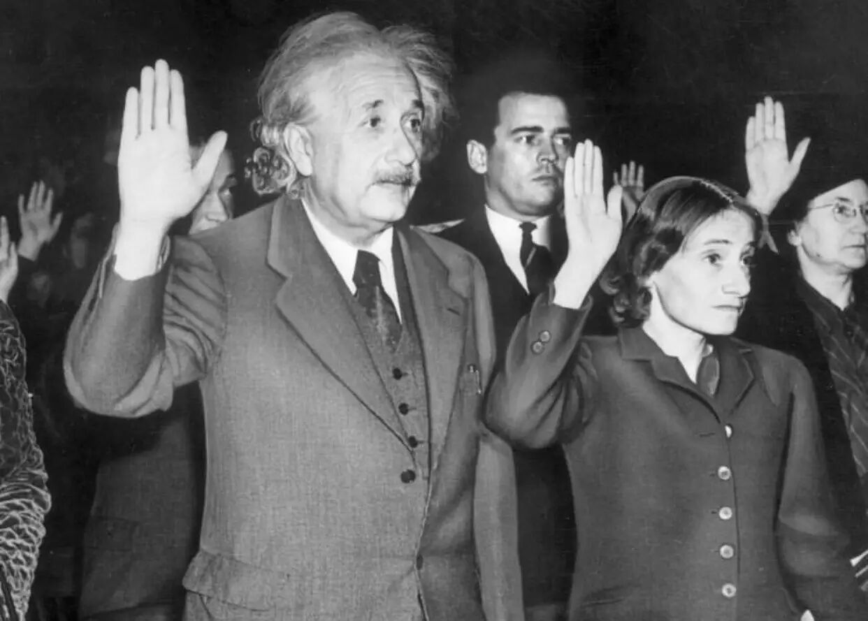 爱因斯坦和女儿在入驻美国居民身份仪式上