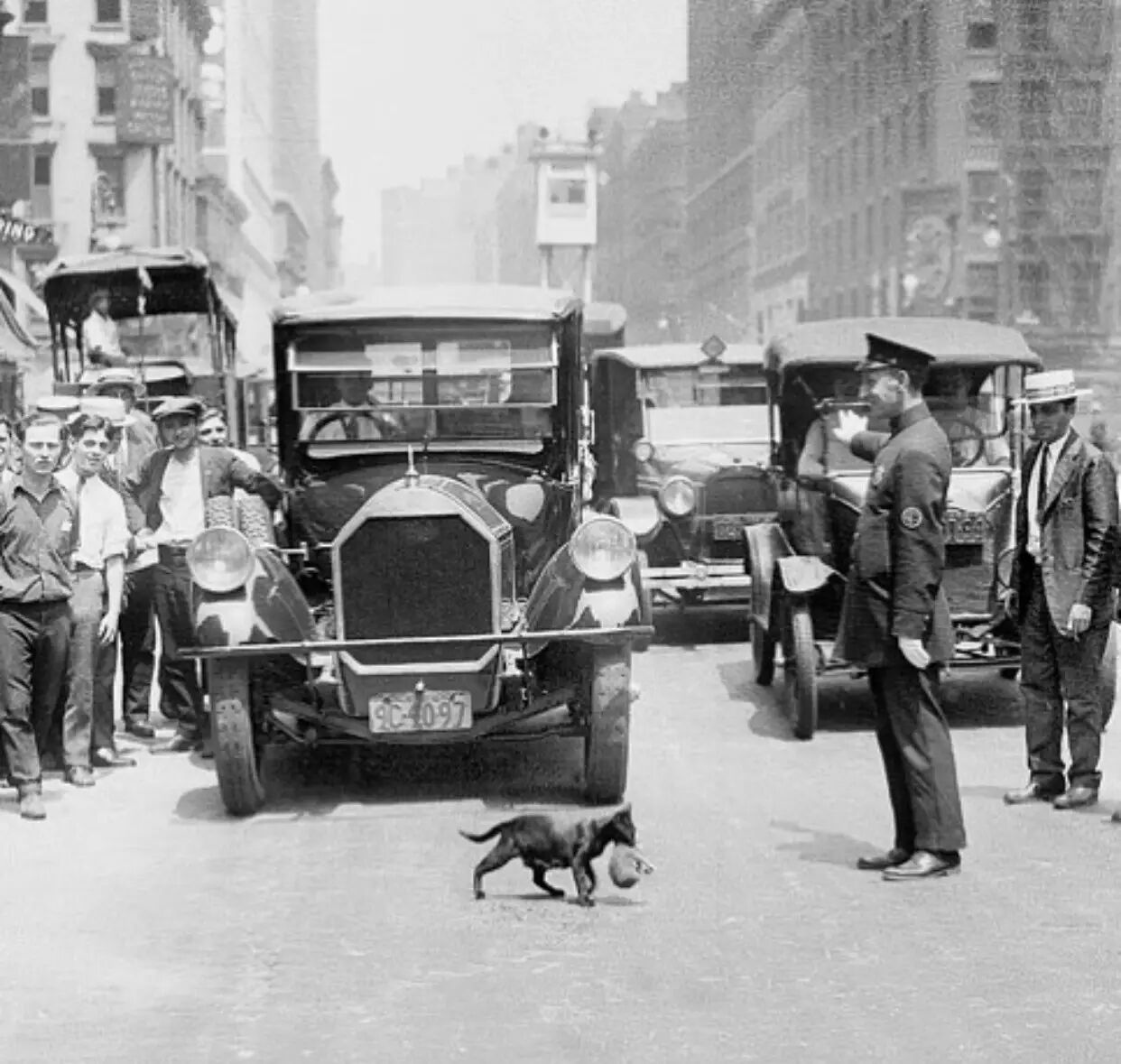 士兵James Cudmore指挥着交通,让车辆为小狗等待,随后小狗一只只将小猫叼到马路对面