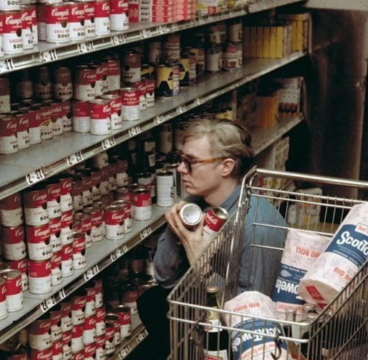 Andy Warhol在超市购买了很多罐头,这是安迪一张标志性照片