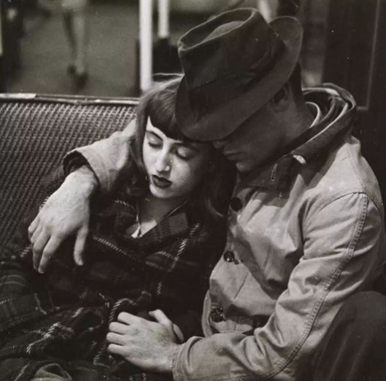 一对情侣在纽约的地铁上
