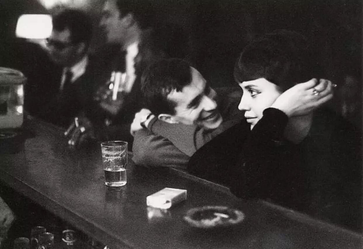 法国酒吧的男子和女子说笑