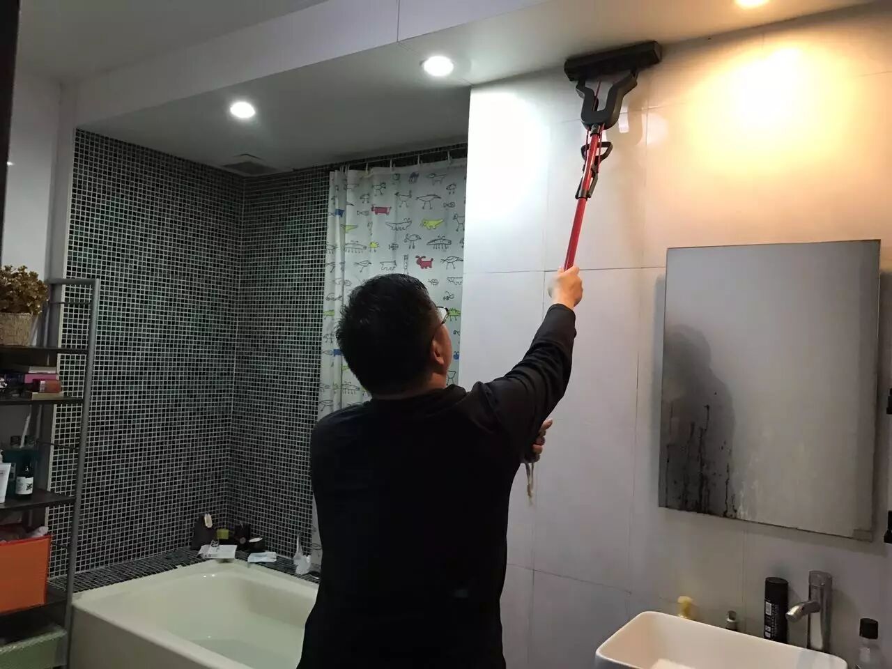夸张的是,那晚我泡了澡,整个浴室都被蒸汽湿透了,墙上都是水,joe还拿拖把去刷墙上的水!▼