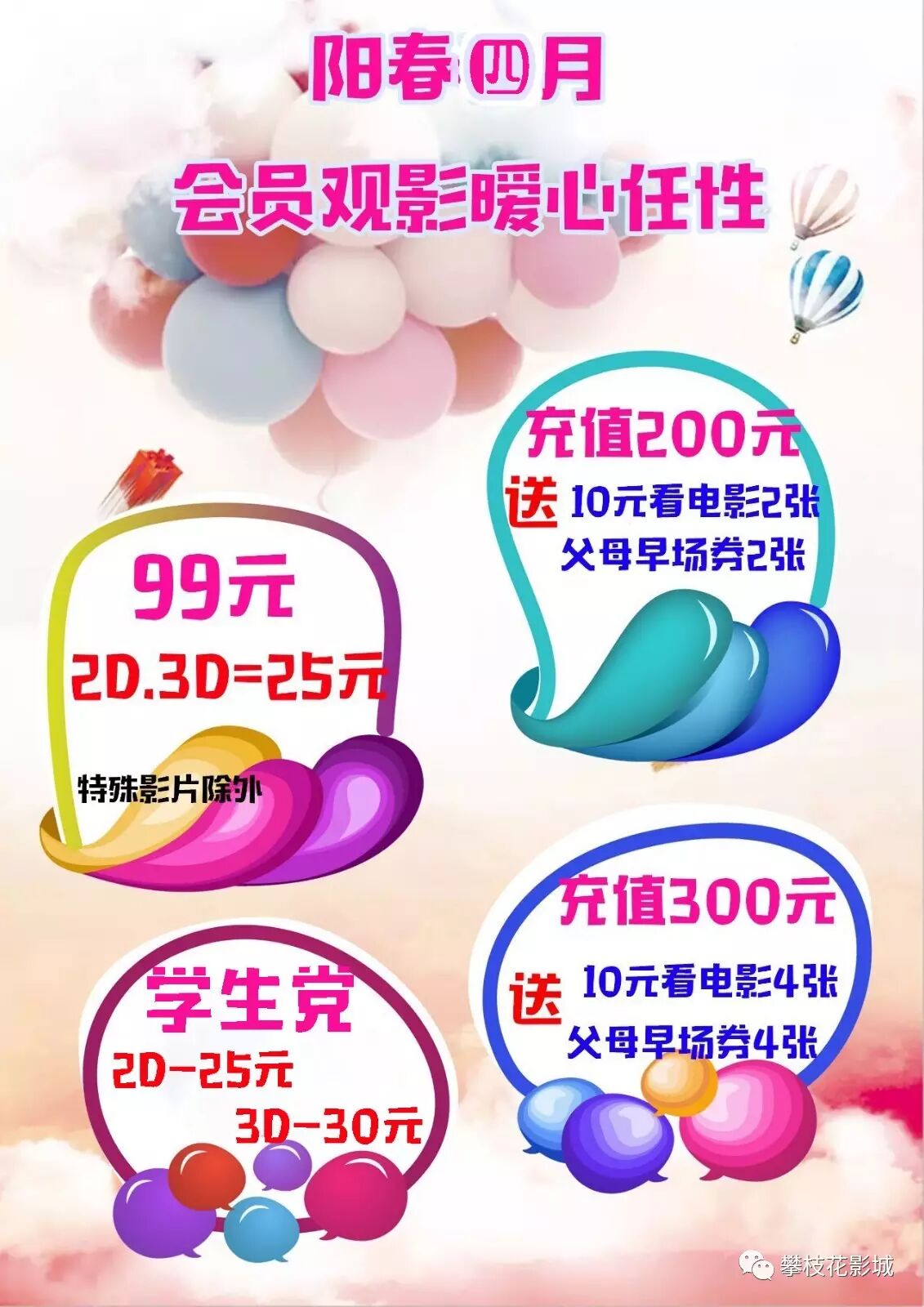 关注攀枝花影城微信公众号“pzhyc520”,转发指定内容至您的微信朋友圈,累积30个点赞,每周二即可获得由攀枝花影城送出的电影券。
