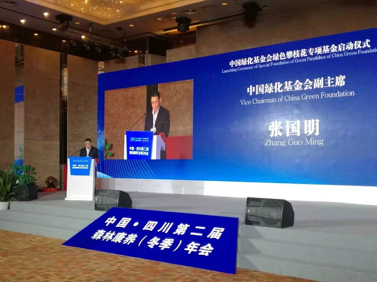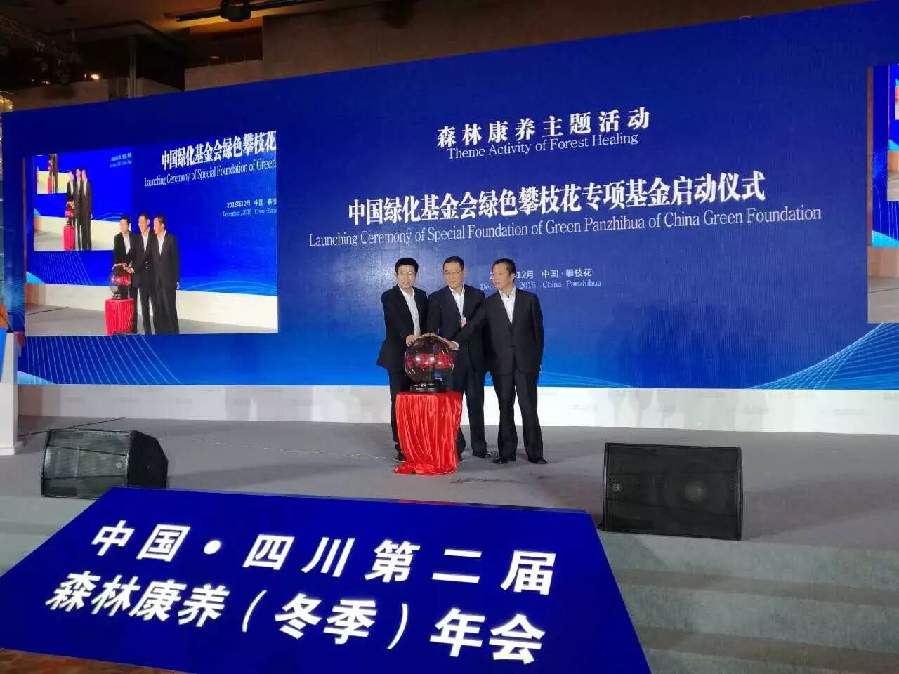 中国绿化基金会副主席张国明,市委常委、,副市长李仁杰共同点亮水晶球,中国绿化基金会绿色攀枝花专项基金正式启动。