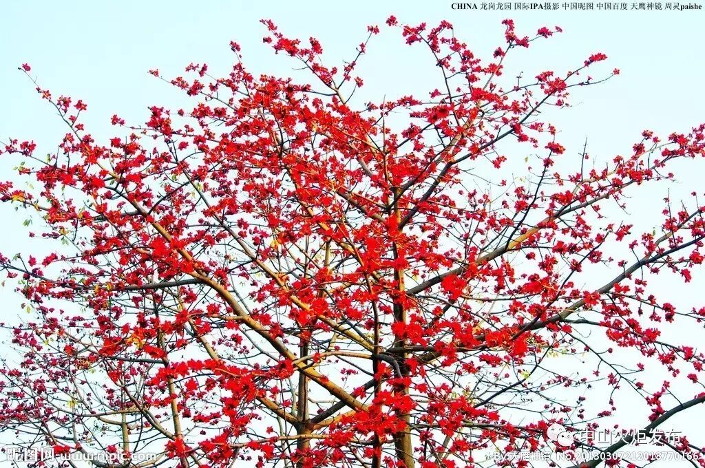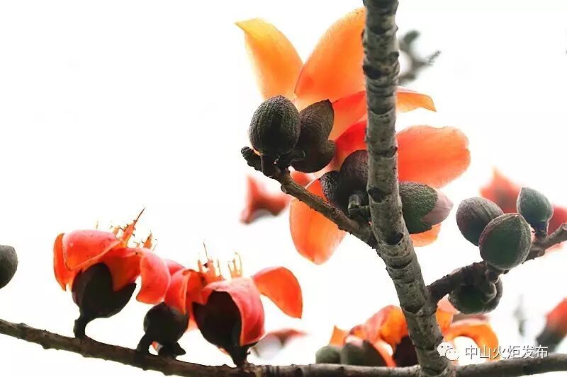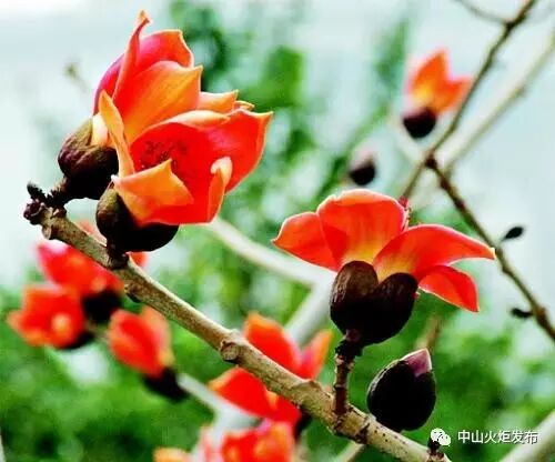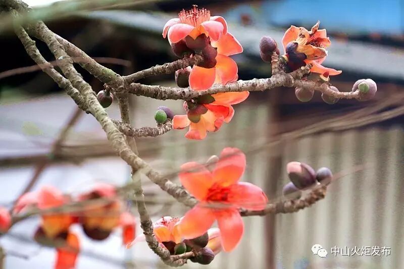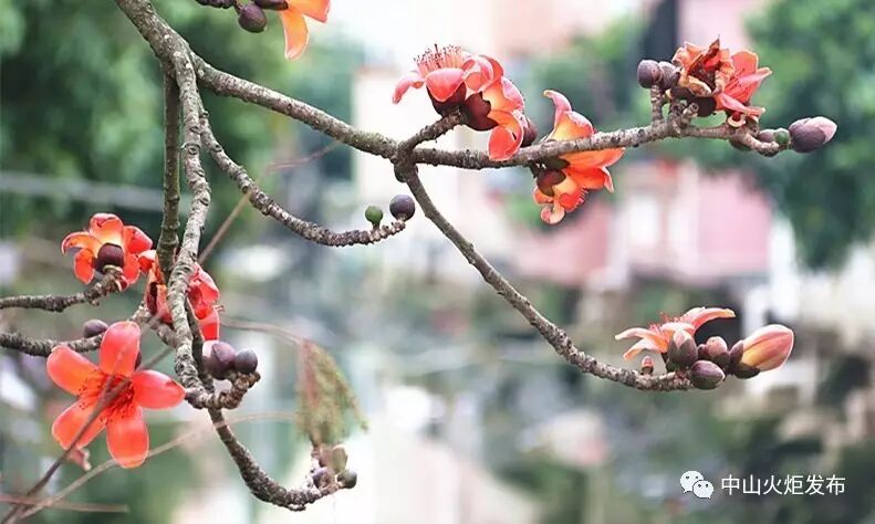 火炬哥在灰炉小区看到,木棉树上的花苞竞相绽放,木棉枝干伸展,一朵朵红花点缀其上,花开满枝,争相吐艳,构成一幅幅画卷,一派生机盎然的景象,成为水乡一道靓丽的风景。