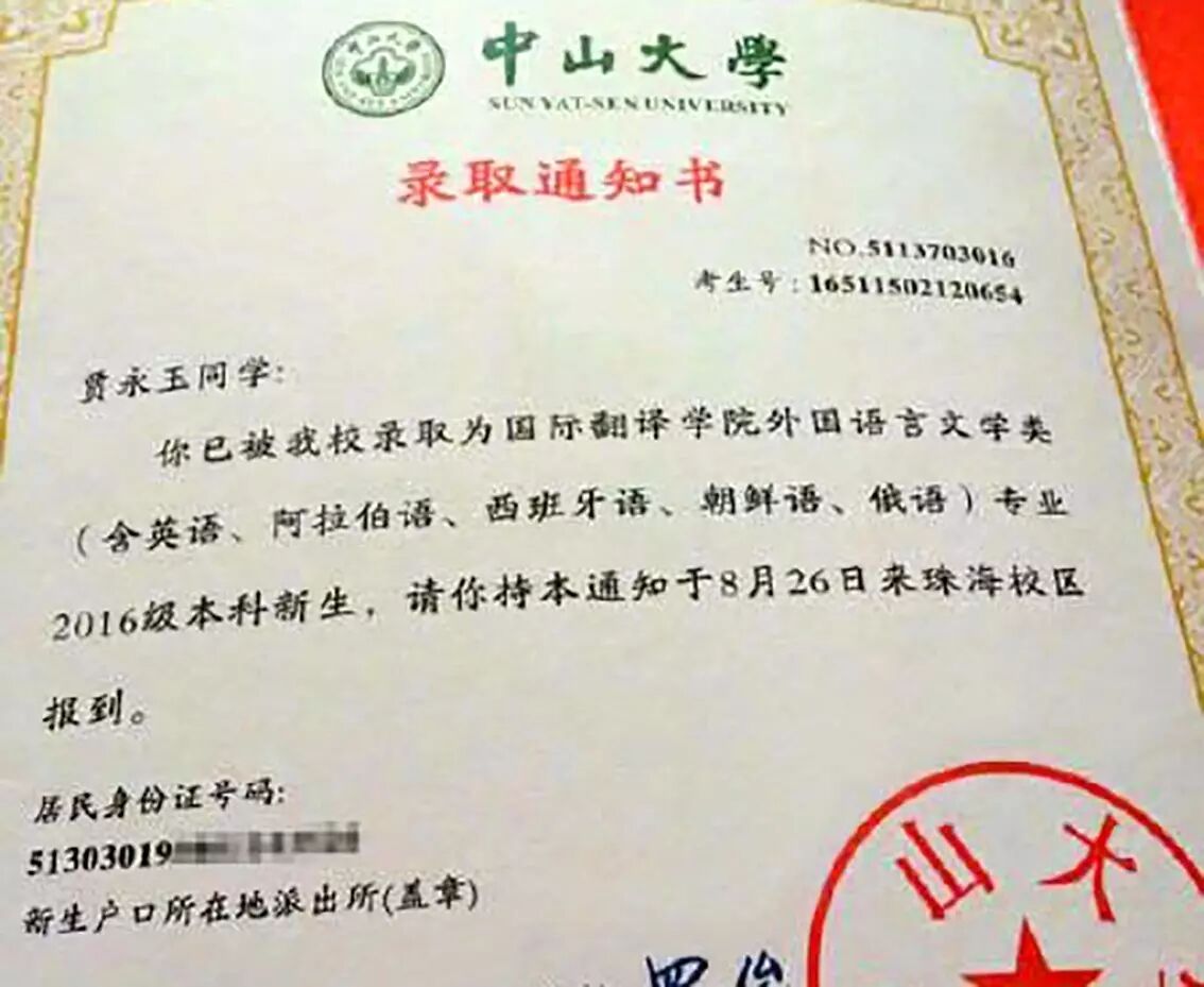 因户籍归档出错,四川一县文科第一名被名校录取后退档在四川巴中平昌县上学的贾永玉,户籍本在达州渠县。高考前在老师建议下,她申报了一项针对平昌籍考生的高考加分专项计划,并通过层层审核。高考596分的贾永玉因此获得了10分的加分,以606分的成绩被中山大学录取,之后又被该校退档。平昌县招生办:户籍归档错误,录取被取消。最终贾永玉被补录到川内一所高校的一个二本专业。目前纪委已介入调查。
