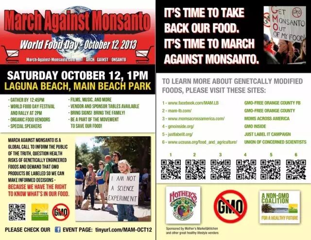 今年 5月23、24日全球数万人参加“反对孟山都”游行,抗议者们总结出的一句话是“人类必须在孟山都终结人类之前终结孟山都。